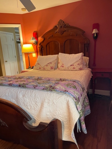 Beth's Courtyard is perfect for the business traveller or for a couple looking for a cozy weekend getaway. With its low entry and large bathroom, it is also the most handicap accessible of our accommodations. This one bedroom, one bathroom cottage is equipped with a kitchenette and desk perfect for working in a relaxing atmosphere. The 1860s Renaissance Revival queen-size bed makes for a comfortable night’s sleep and the large tile shower with glass walls has plenty of room for two.