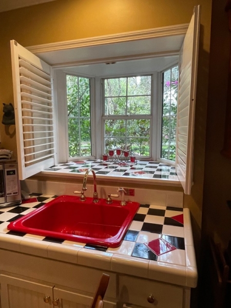 Enjoy the view of the Italian fountain from the kitchen bay window while you listen to relaxing music on the Bose music machine. A private courtyard with two fountains is yours to enjoy day and night. A full breakfast can be enjoyed at the Inn or with prior arrangements can be delivered to your cottage door as part of the full bed and breakfast stay. A TV/DVD player and wi-fi provide modern comforts.